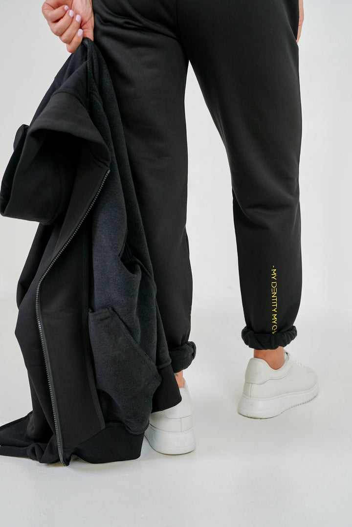 Dámska tepláky s vyšším pásom zo signifikantnej kolekcie IDENTITY so stredne vysokou gramážou predstavujú unikátny nadčasový štýl a pohodlie. Pletenina IDENTITY je na dotyk veľmi príjemná, vyznačuje sa najvyššou kvalitou spracovania a hustým pletením. Materiálové zloženie látky pozostáva z vysokého podielu prémiovej bavlny a z menšieho pomeru polyesteru, vďaka ktorému si tepláky držia svoj tvar a aj po mnohonásobnom vypraní nestrácajú farbu.